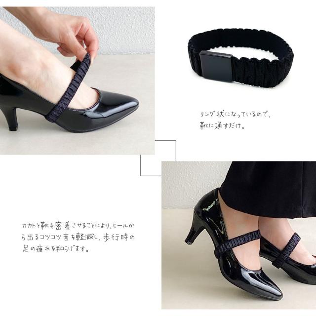 COLUMBUS コロンブス カカト浮き防止ミュールバンド レディース 固定 走れる パンプス ヒール 靴の固定 女性用 婦人靴 黒 ブラック ゴム オフィス 通勤 通学 ローヒール ハイヒール 社交ダンス 15mm