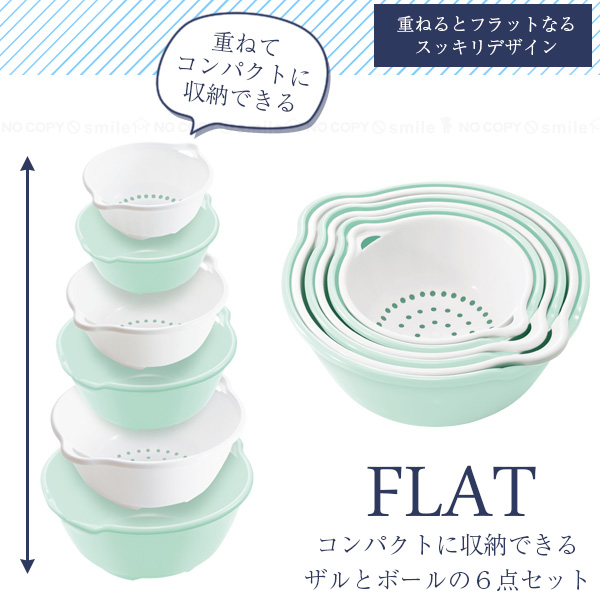 重ねてコンパクトに収納できるザルとボールが各3サイズ、6点セットになったお得なセット。