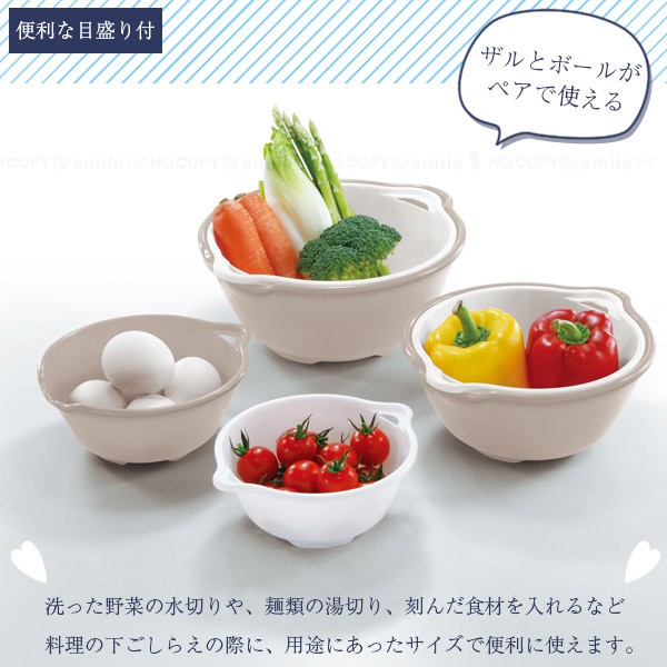 洗った野菜の水切りや、麺類の湯切り、刻んだ食材を入れるなど、料理の下ごしらえの際、用途にあったサイズで便利に使えます。