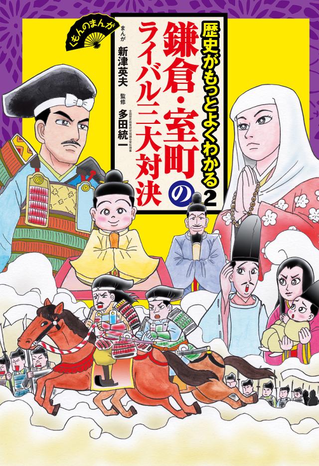●シリーズ2作目の(鎌倉・室町)には、源頼朝VS北条政子VS後鳥羽上皇、足利尊氏VS後醍醐天皇VS足利義満、足利義政VS日野富子VS細川勝元VS山名持豊の3組の人物(ルビ ライバル)たちを描いた漫画を収録。3本の漫画を通して、武士の世の中の幕開けとなった〈鎌倉・室町)という時代が、もっとよくわかる。
