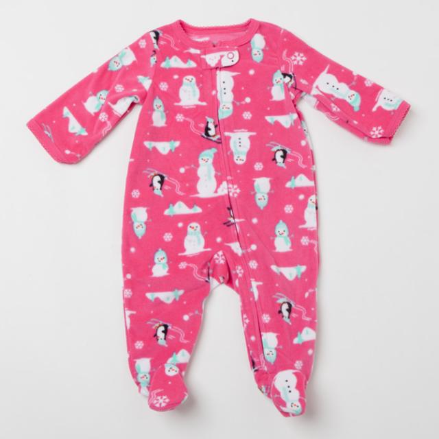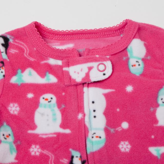 カーターズ【Carters】(カーターズ カバーオール) フリース 足つきカバーオール☆ピンクホワイト×雪だるま ペンギン