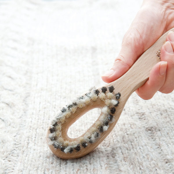 プロのアイデアを商品化。ハードな猪毛でしつこい毛玉をしっかりキャッチ、ソフトな豚毛でデリケートなニットの毛並みを優しく整えます。窪みがあって、握りやすいグリップ。ブラシ部分の真ん中に穴があいているので、ケアしながら毛並みの状態を常にチェックできます。ブラシについた毛玉は、専用のブラシクリーナーでお掃除OKです。