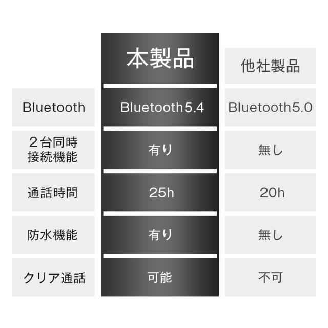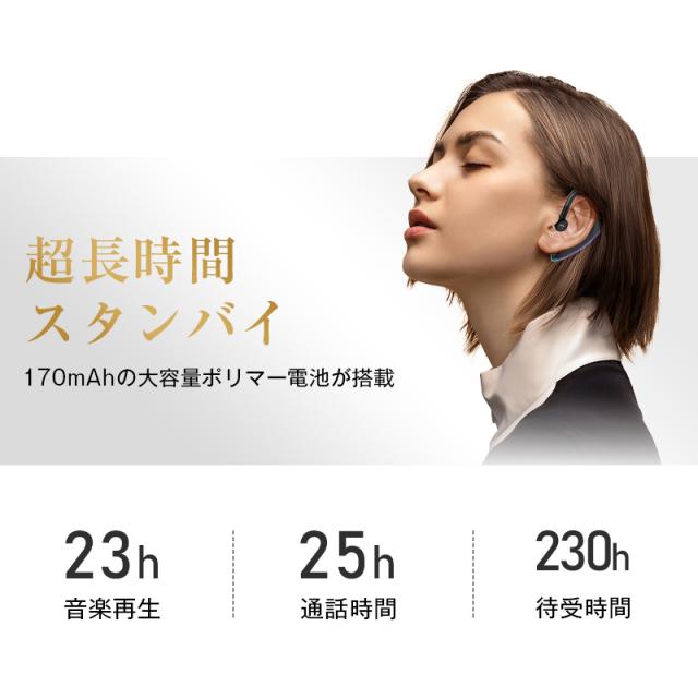 左右耳通用 Bluetooth5.4 ワイヤレスイヤホン 180°回転 長時間待機 耳掛け型 日本語音声通知 25時間連続通話 IPX5防水レベル 【PL保険加入済み製品・安心】