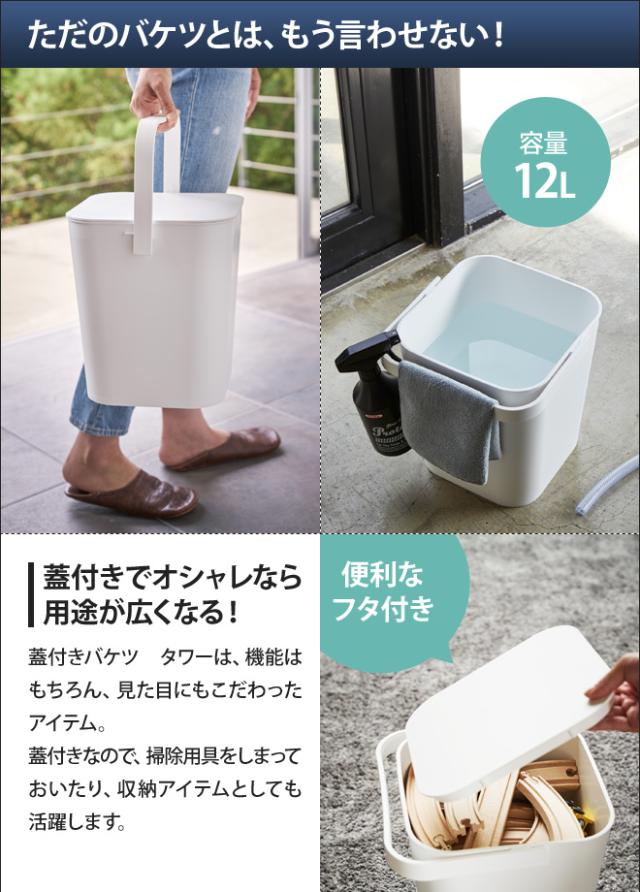 山崎実業 バケツ 蓋 蓋付きバケツ 収納ボックス おもちゃ箱 サニタリーボックス ゴミ箱 ダストボックス 収納ケース おもちゃ入れ フタ付バケツ バケット おむつ入れ 四角 角型 持ち手 取っ手 蓋つき キッチン サニタリー 台所 トイレ リビング 収納 yamazaki タワーシリーズ 黒 ブラック 白 ホワイト tower タワー フタ付きバケツ 4208 4209 4903208042086 4903208042093 雑貨 フタ付き 生理用品 おもちゃ ストレージ かご タオル掛け シンプル モダン 日本製 ふた付 持ち運び 12L 洗車 掃除 洗濯 用品 雑巾