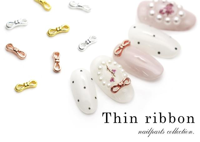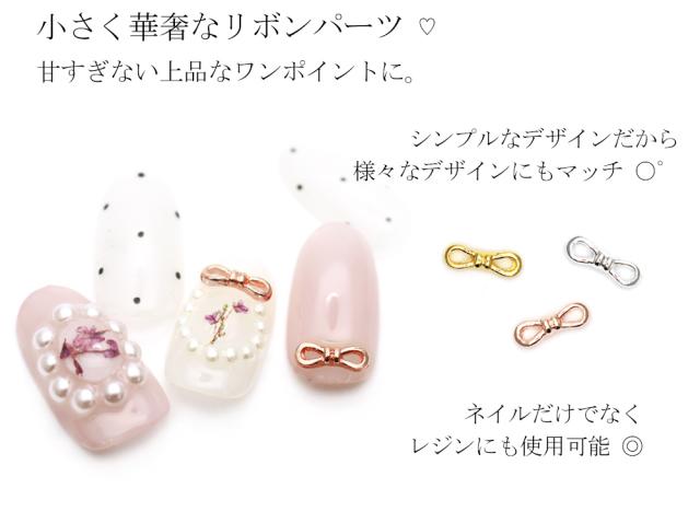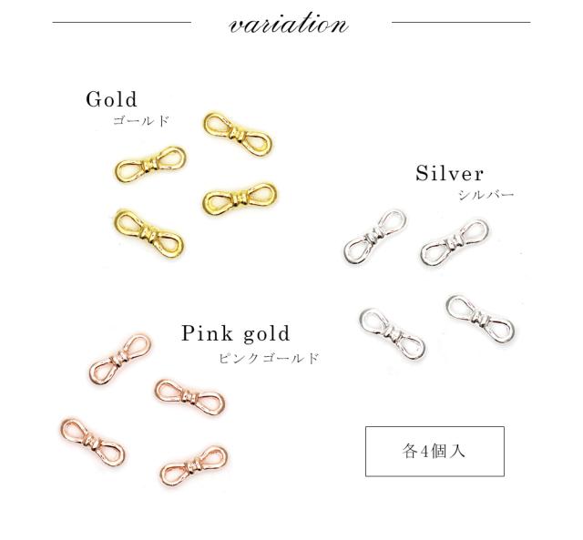 ネイルパーツ 細リボンパーツ 4個入り ゴールド/シルバー/ピンクゴールド