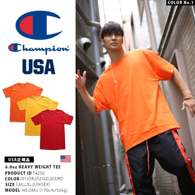 【14%OFF】Champion USA Tシャツ 半袖 メンズ レディース 春夏用 オレンジ/ゴールド/赤 S-XL ビッグTシャツ 大きいサイズ チャンピオン USAモデル アメリカ規格 ロゴ スポーツ ストリート系 ファッション ブランド 服 かっこいい おしゃれ ビッグシルエット T4250