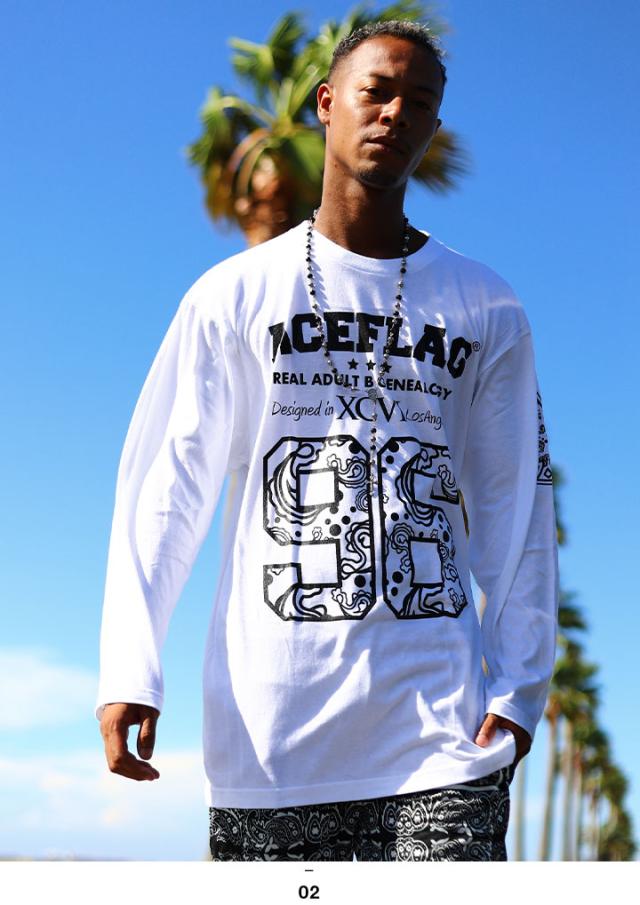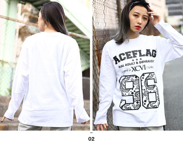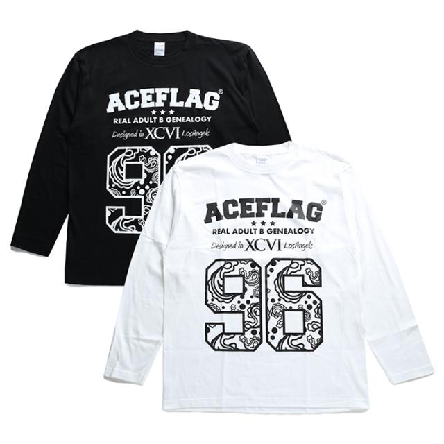ACEFLAG ロンT ストリート メンズ レディース 黒 白 大きいサイズ エースフラッグ Tシャツ 長袖 シンプル スペード ロゴ ペイズリー柄 ナンバー 96 b系 ヒップホップ ファッション ダンス ストリート系 ブランド 服 AF-TL-LT-006