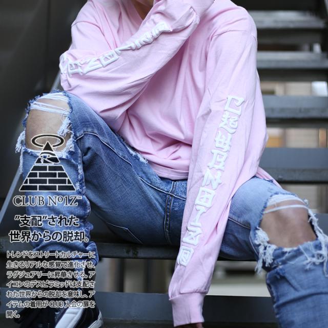 CLUB NO1Z ロンT ストリート メンズ レディース 春秋冬用 ピンク/緑 大きいサイズ ビッグシルエット クラブノイズ 長袖 袖ロゴ オーバーサイズ ダンス b系 ヒップホップ HIPHOP ストリート系 ハイ ブランド CN-TL-LT-009