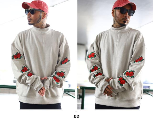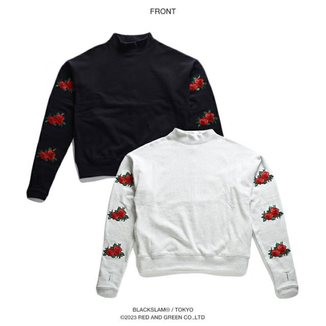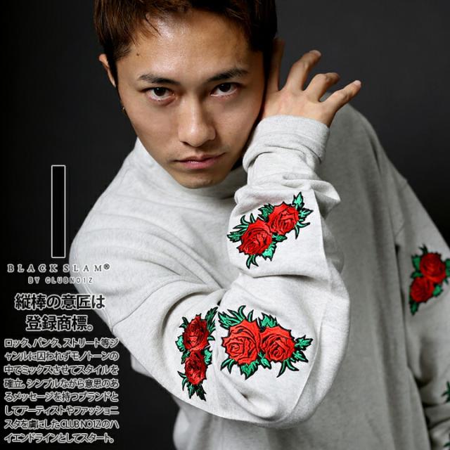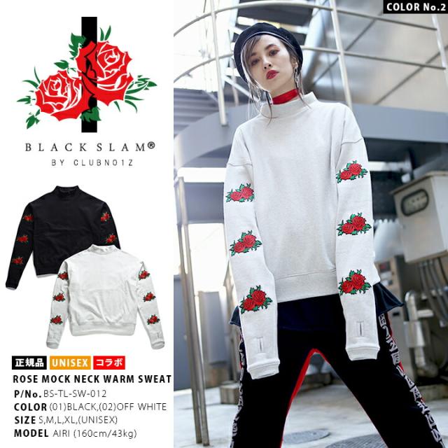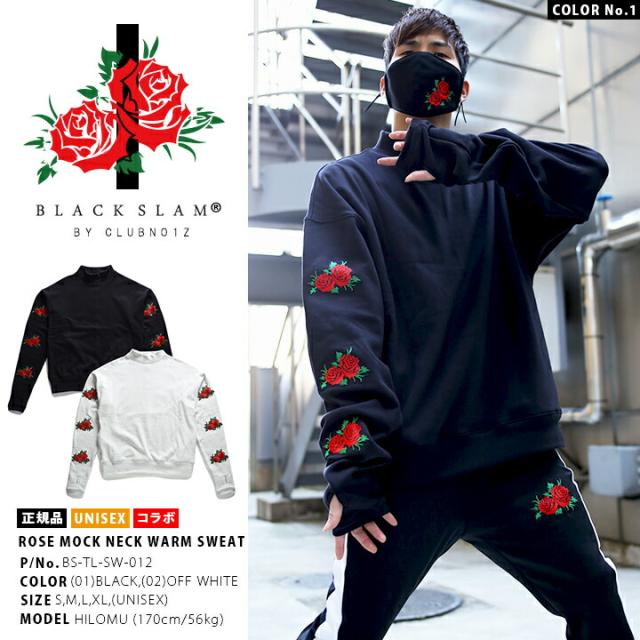 BLACK SLAM ストリート系 トレーナー 長袖 裏起毛 メンズ レディース 黒 白 大きいサイズ クラブノイズ スウェット モックネック 袖ロゴ 花柄 b系 ヒップホップ ファッション ダンス ハイ ブランド 服 BS-TL-SW-012