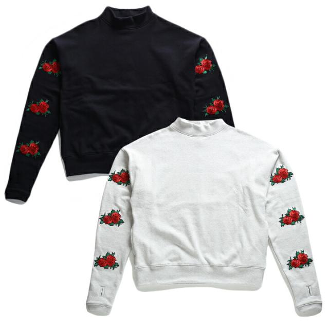 【人気】S-XL おしゃれ かっこいい ワッペン バラ 刺繍 フィンガーホール プルオーバー かぶり式 裏起毛トップス メンズファッション レディースファッション