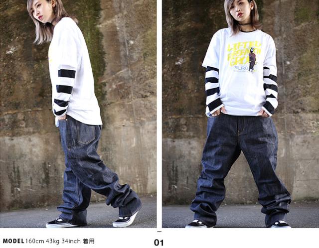 ※bボーイスタイルで穿くため、モデルは通常32インチですが、6インチアップの38インチを腰履きしています。