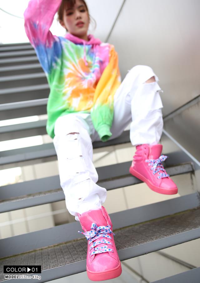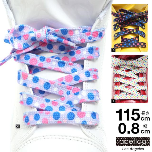 靴紐 おしゃれ エースフラッグ ACEFLAG シューレース 平紐 くつひも メンズ 男女兼用 b系 ドット柄 水玉 ビビット パステルカラー グラデーション カラフル 総柄 長さ115cm ダンス衣装 ストリート系 AF-FW-KH-005