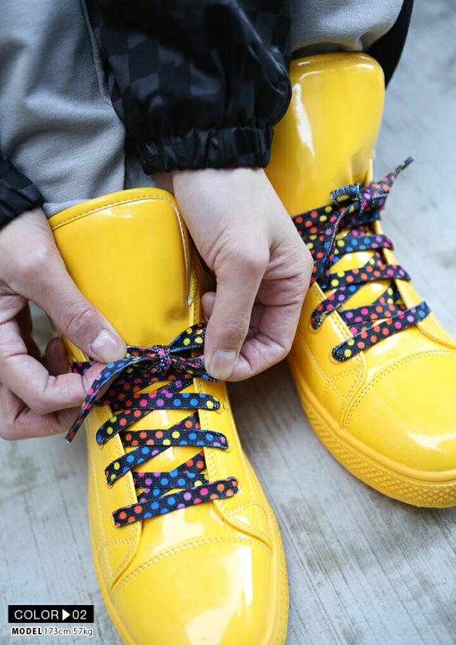本商品はキックス愛好家の為のシューレース・コレクション。(01)ハーフトーンのパステルカラーや(02)(03)ビビットな高彩度の水玉模様を落とし込んだドット柄デザイン。靴をカラフルに飾るクールな仕上がり。足元からコーディネート全体を格上げします。