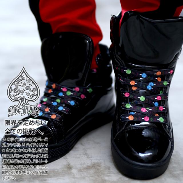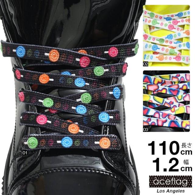 靴紐 おしゃれ エースフラッグ ACEFLAG シューレース 平紐 くつひも メンズ レディース b系 キャンディー 飴玉 アニメハート キュート 総柄 やや太め アメカジ ダンス ギフト ストリート系 AF-FW-KH-007