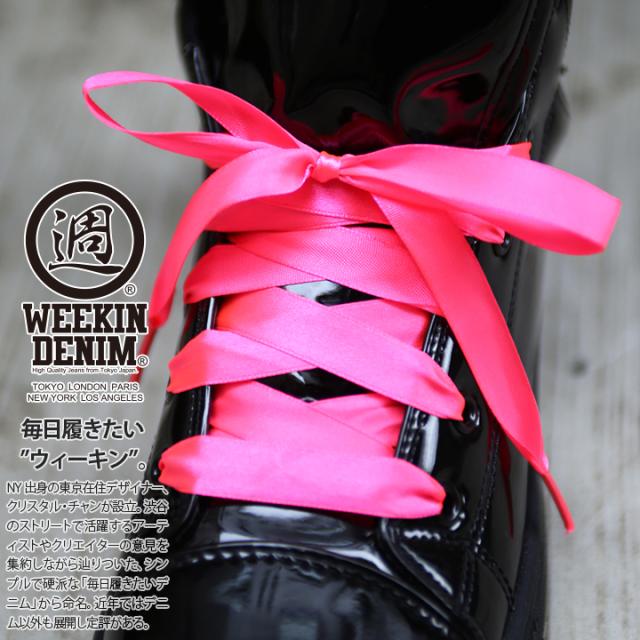 靴紐 おしゃれ ウィーキンデニム WEEKIN DENIM シューレース 靴の印象をガラリと変える くつひも メンズ レディース ファッション 平紐 キラキラ光る サテン リボン 幅太め 130cm シンプル 無地 蛍光 D-FW-KH-028