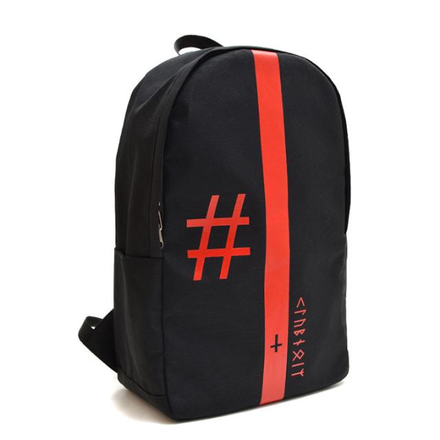 今、ストリートで大人気のフロントポケット無しのスマートなディティール。よりフロントの大きめのプリントを強調し、よりバックをファッションの一部に近づけたデザイン。人気のハッシュタグとボックスロゴとルーン文字のMIXデザイン。