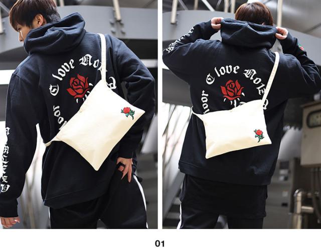 BLACK SLAM バッグ メンズ 春夏秋冬用 白 クラブノイズ ブラックスラム サコッシュ BAG ショルダーバッグ 小さめ ポーチ 花柄 ワッペン 刺繍 b系 ヒップホップ ファッション ストリート系 ハイ ブランド BS-BG-SB-002