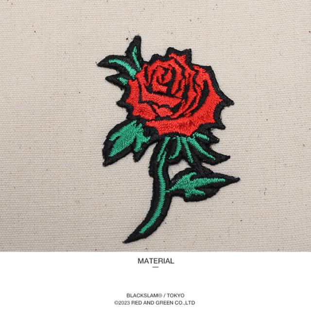 アーバン感溢れるワンポイントの薔薇の刺繍ワッペンで、スタイリッシュに仕上げたハイモードな仕上がり。