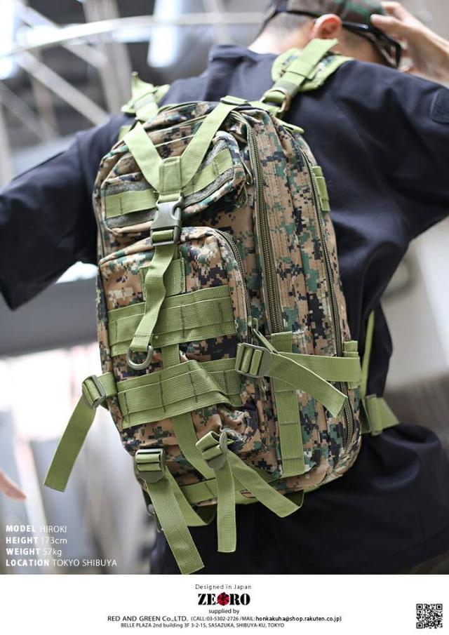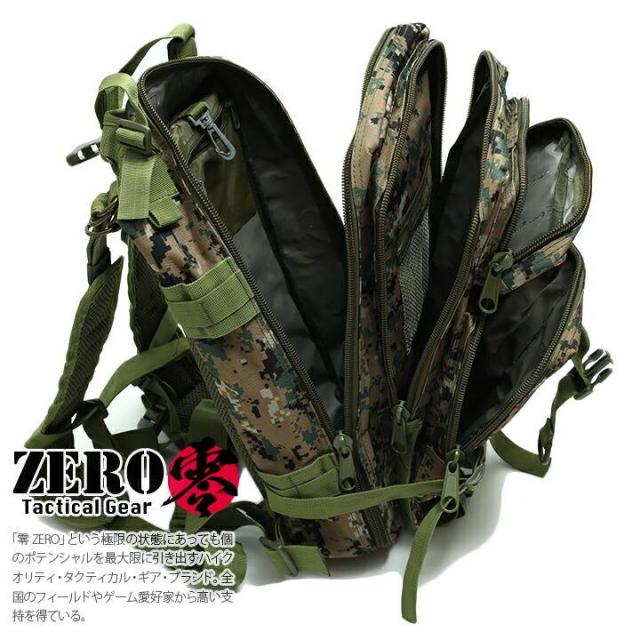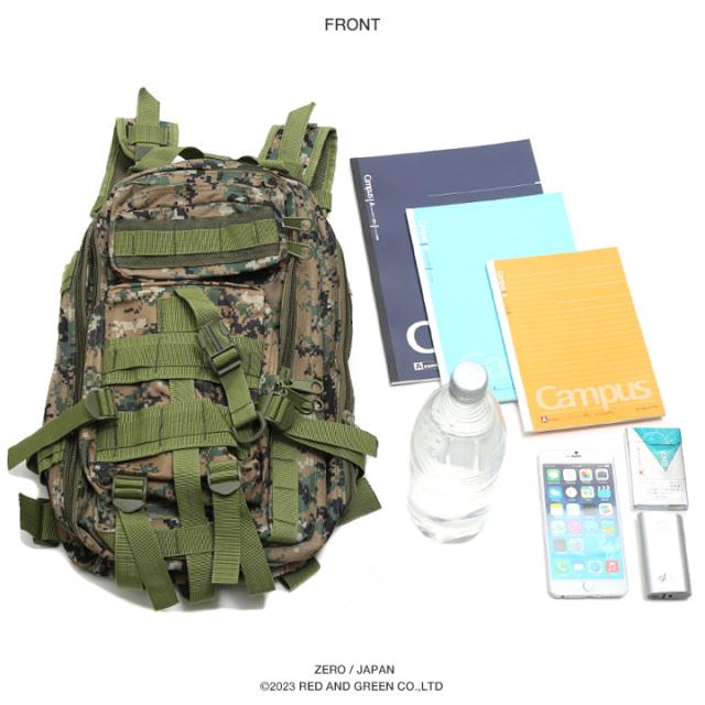 バックパック アサルトバッグ 迷彩 バッグ メンズ リュック かっこいい おしゃれ デジカモ デジタル迷彩柄 緑 高機能 装備 アウトドア キャンプ 登山 サイクリング ジム 通勤 通学 スポーツ 零 ZERO ZR-BG-RU-006-DG