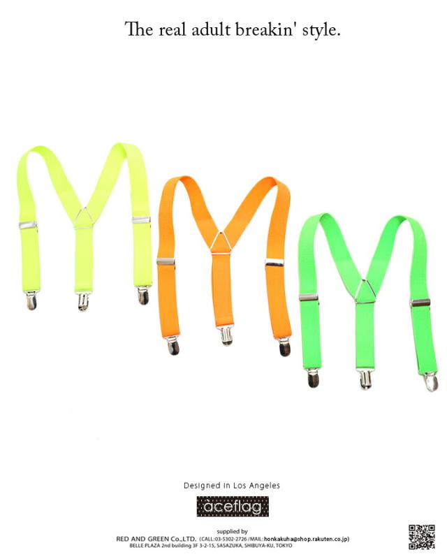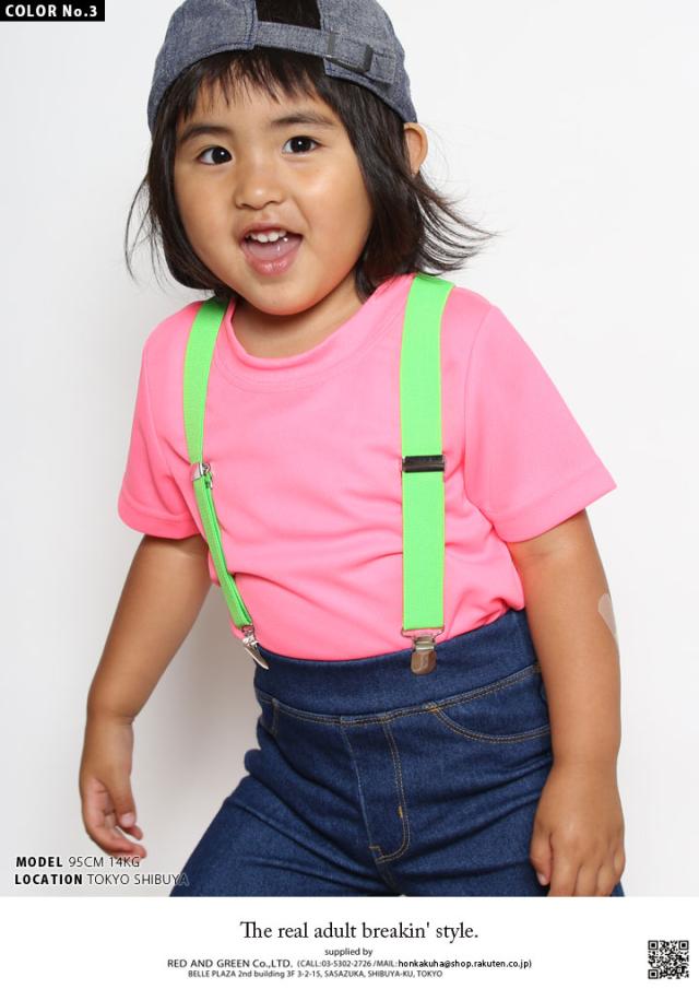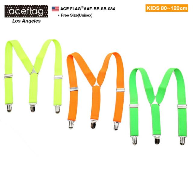 サスペンダー キッズサイズ 1歳から5歳 80cmから120cm 対応 子供用 女の子 男の子 ベビー かわいい 無地 シンプル 蛍光 オレンジ イエロー グリーン アメカジ ACEFLAG 運動会 b系 ヒップホップ ギフト AF-BE-SB-034