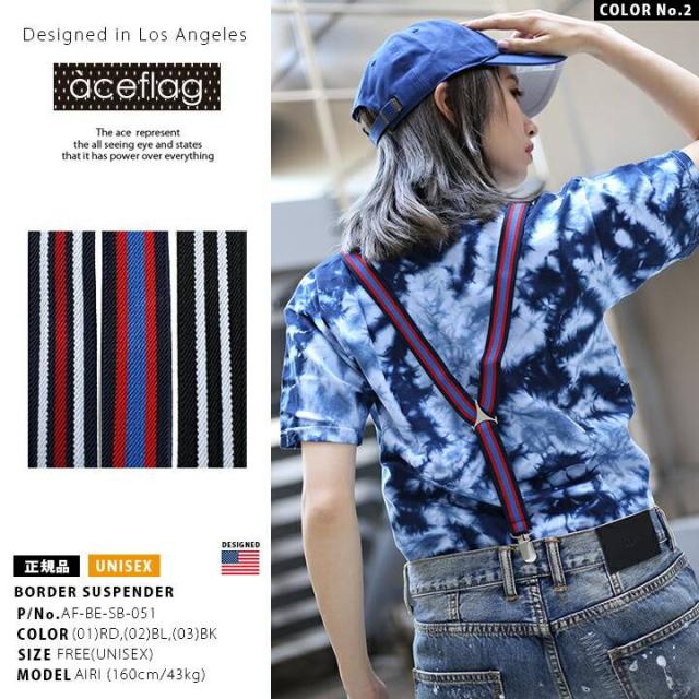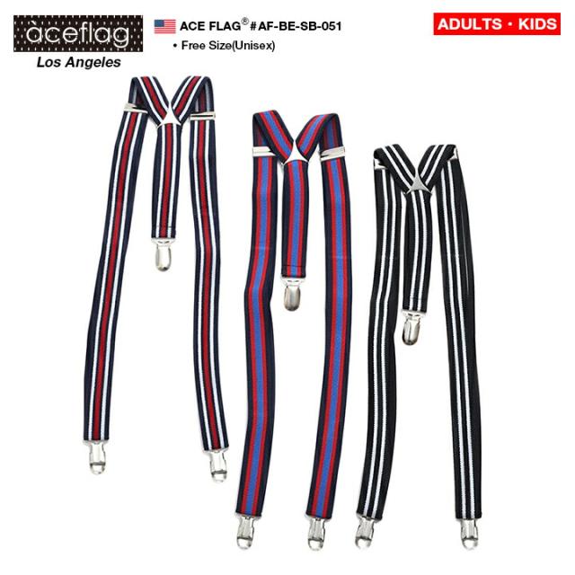 サスペンダー ACEFLAG 男の子 女の子 キッズ 子供用 大人用 ユニセックス 吊りバンド カラーボーダー ライン 切替 青 赤 黒 アメカジ 運動会 体育祭 男女兼用 b系 ヒップホップ ストリート系 AF-BE-SB-051