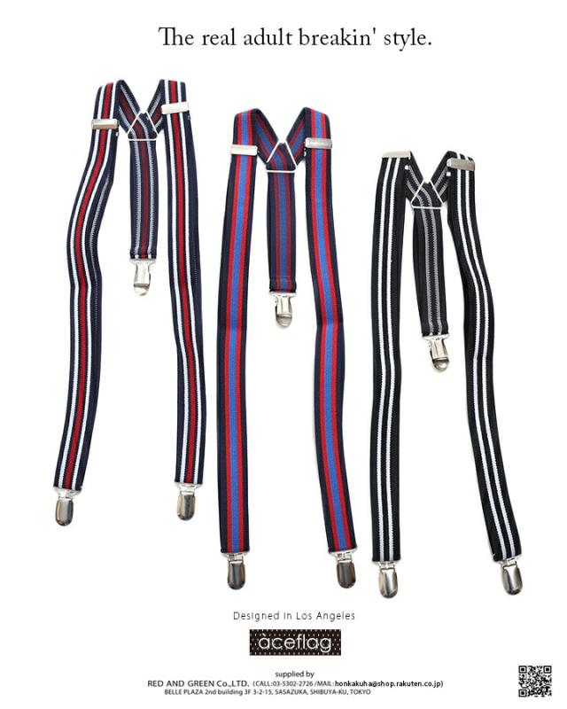 国内の有名アーティスト、ファッショニスタが着用し話題のLA発ストリート系ブランド「ACEFLAG/エースフラッグ」からオシャレなサスペンダーが入荷。WOOFIN'や411等の雑誌掲載で火が付きダンスやストリートシーンで圧倒的人気とシェアを誇るスペードのアイコンでおなじみのLAセレクトブランド。