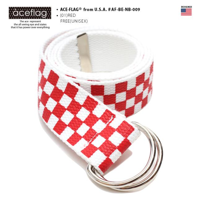 ラスト1点【84%OFF】エースフラッグ ACEFLAG ベルト メンズ レディース チェッカーフラッグ ブロックチェック 赤白 リング式 布 22-44インチ対応 モード ダンス衣装 ロック b系 ヒップホップ ストリート系 ファッション AF-BE-NB-008