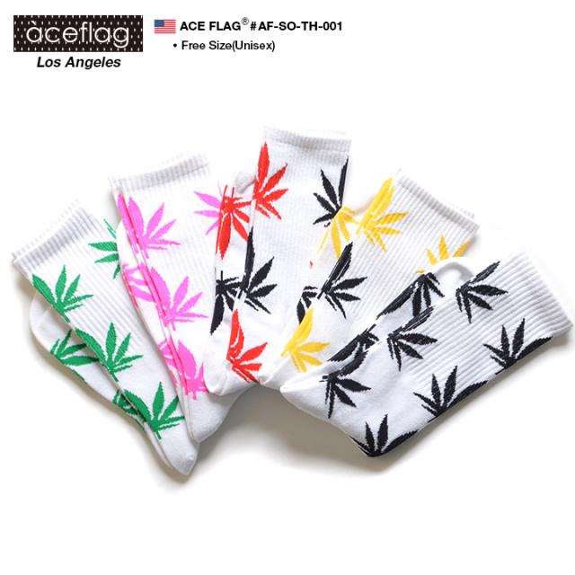 b系 ヒップホップ ストリート系 ファッション メンズ レディース ソックス ACEFLAG/エースフラッグ【AF-SO-TH-001】≪POP COLOR HEMP SOCKS≫男女兼用 白 靴下 ヘンプ マリファナ【Free】【団体注文OK】 【メール便_送料無料】 秋新作