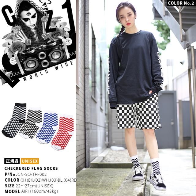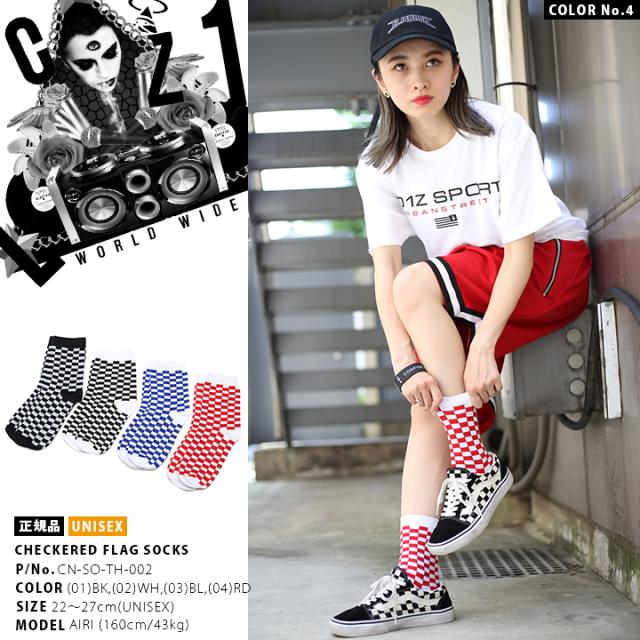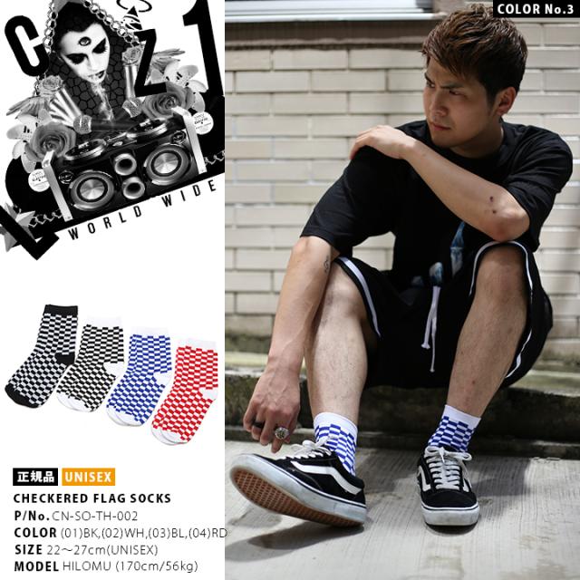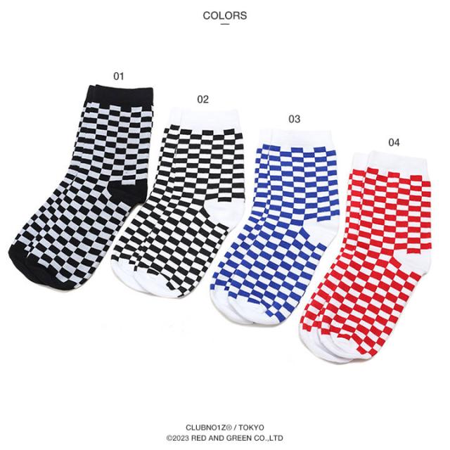 CLUB NO1Z 靴下 ソックス ミドル丈 全4色 クラブノイズ クルーソックス スニーカーソックス おしゃれ 切り替え バイカラー チェッカーフラッグ 柄 b系 ヒップホップ ファッション ダンス ストリート系 CN-SO-TH-002