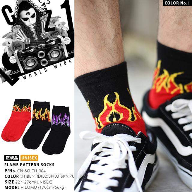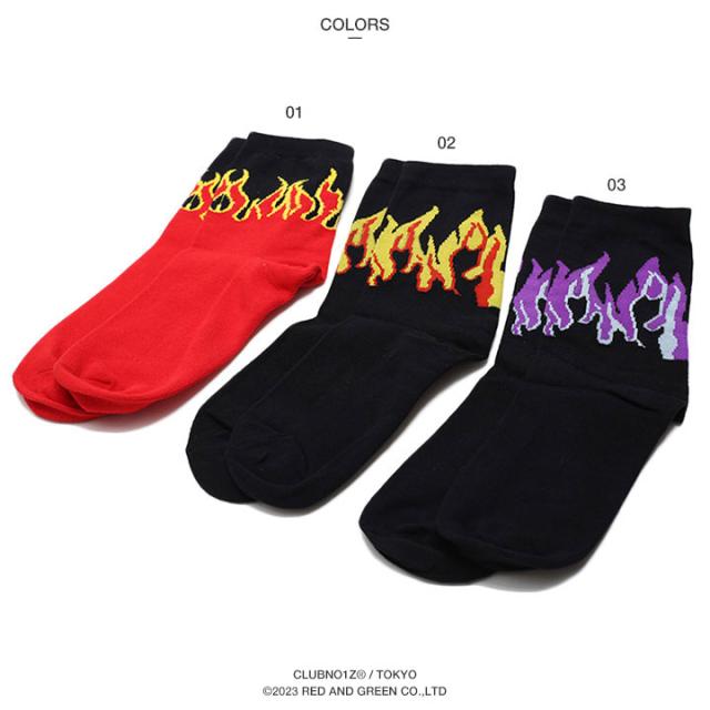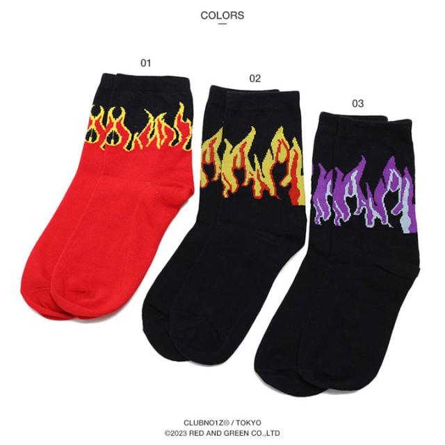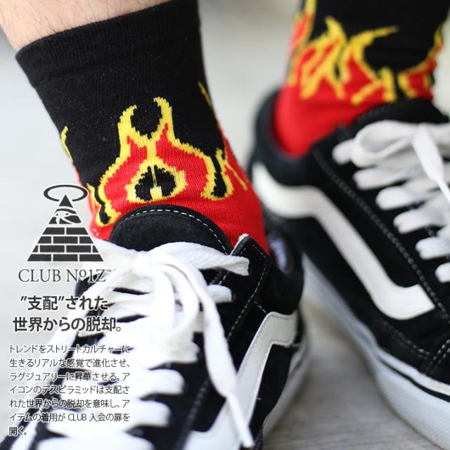 CLUB NO1Z 靴下 ソックス ショート丈 メンズ レディース 全3色 クラブノイズ ショートソックス スニーカーソックス おしゃれ 派手 総柄 ファイヤーパターン バイカラー 切替 b系 ヒップホップ ファッション CN-SO-TH-004