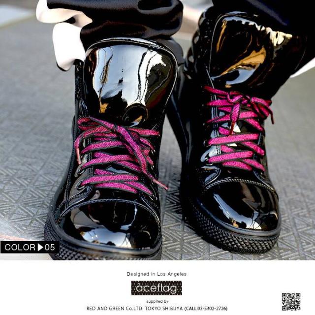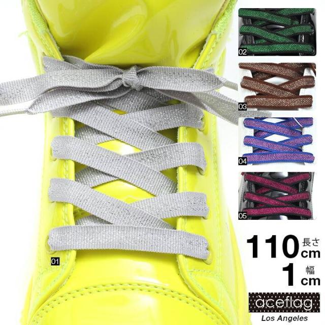靴紐 おしゃれ エースフラッグ ACEFLAG シューレース 平紐 靴の印象をガラリと変える魔法の靴ひも くつひも メンズ レディース b系 ラキラ光る ラメ グリッター ライン カラフル ダンス ストリート系 AF-FW-KH-052