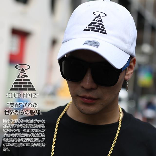 CLUB NO1Z キャップ ローキャップ 白 クラブノイズ 帽子 cap 浅め ベースボールキャップ おしゃれ シンプル ワンポイント ピラミッド ロゴ 刺繍 b系 ヒップホップ ファッション ダンス ストリート系 CN-CA-SB-031