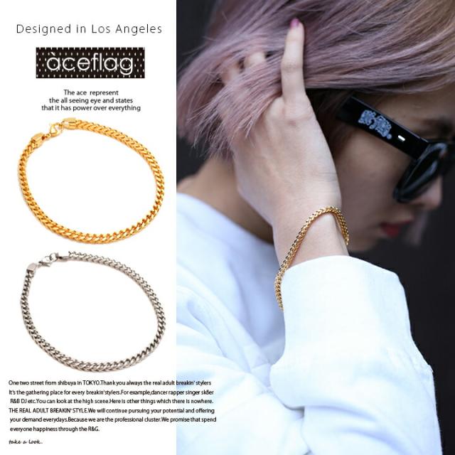 【ラスト1点】ブレスレット b系 ヒップホップ ファッション メンズ レディース SKINNY BOX CURBED CHAIN BRACELET エースフラッグ ACEFLAG ブリンブリン ゴールドチェーン シルバーチェーン Fサイズ 正規品 ギフト AF-BR-BR-009