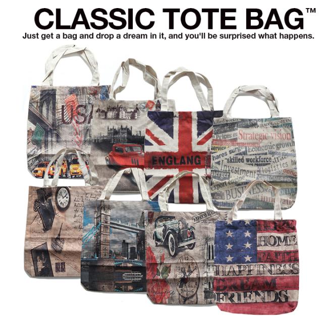 トートバッグ 麻 リネン キャンバス BAG メンズ レディース USAイエローキャブ クラシックカー赤 ユニオンジャック ワード 羽ペン タワーブリッジ 時計 アメリカ 大人女子 ナチュラル エコ 世界の名所 国旗 レトロ クラシック 13リットル ギフト クリスマスギフト BA-14-001