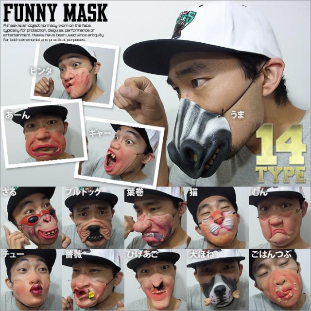 売り尽し もりっと盛り上げ隊 ファニーマスク NO.1-14 面白い うま さる ブルドッグ 葉巻 猫 むん チュー 薔薇 ひげあご 犬ほね ごはんつぶ ピンタ ギャー あーん ガキ使 笑ってはいけない 半顔 アゴ クリスマスギフト ハロウィンヲタ映えモード