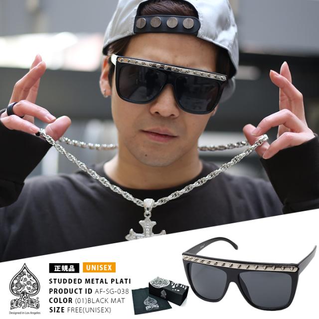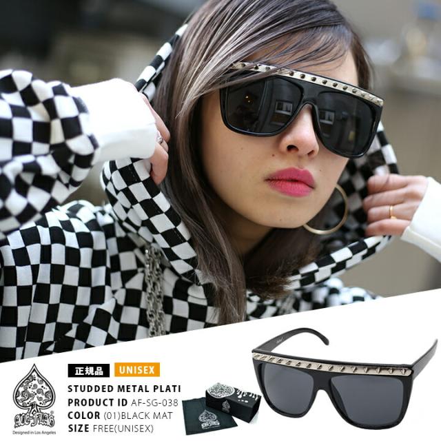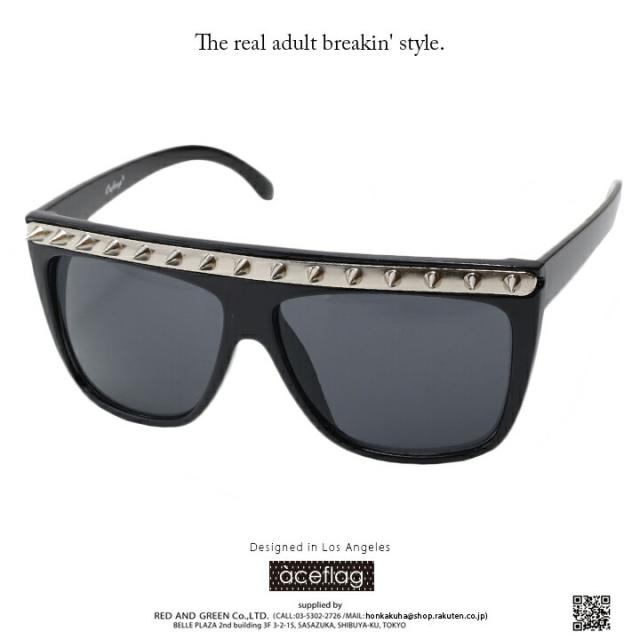 b系 ヒップホップ メンズ レディース サングラス エースフラッグ ACEFLAG UVカット 黒 ブラックマット ブラックレンズ スタッズ付き 折り畳みサングラスケース オリジナルクロス 3点セット パンク ロック AF-SG-038