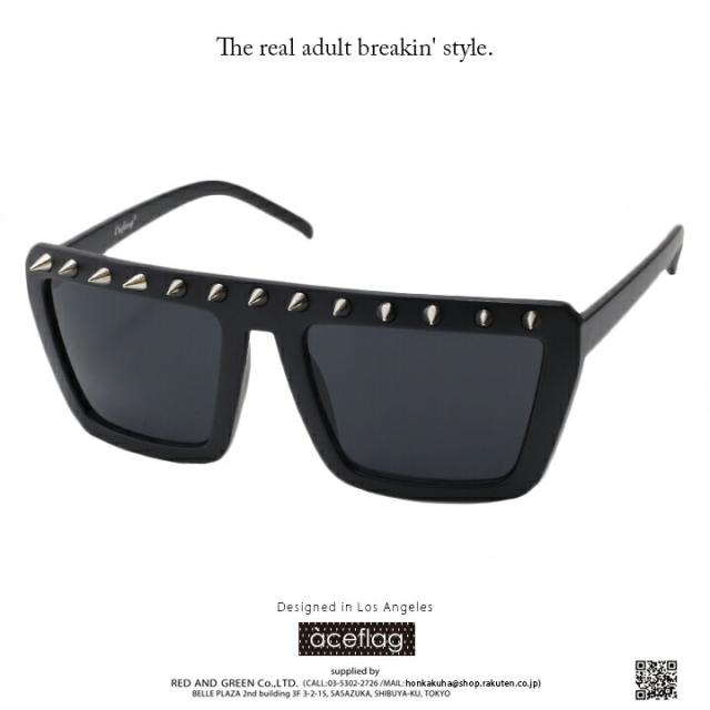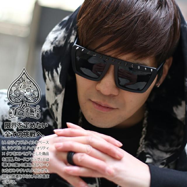 b系 ヒップホップ ストリート系 ファッション メンズ レディース サングラス エースフラッグ ACEFLAG UVカット 黒 スタッズ付き 折り畳みサングラスケース オリジナルクロス 3点セット パンク ロック ギフト AF-SG-019