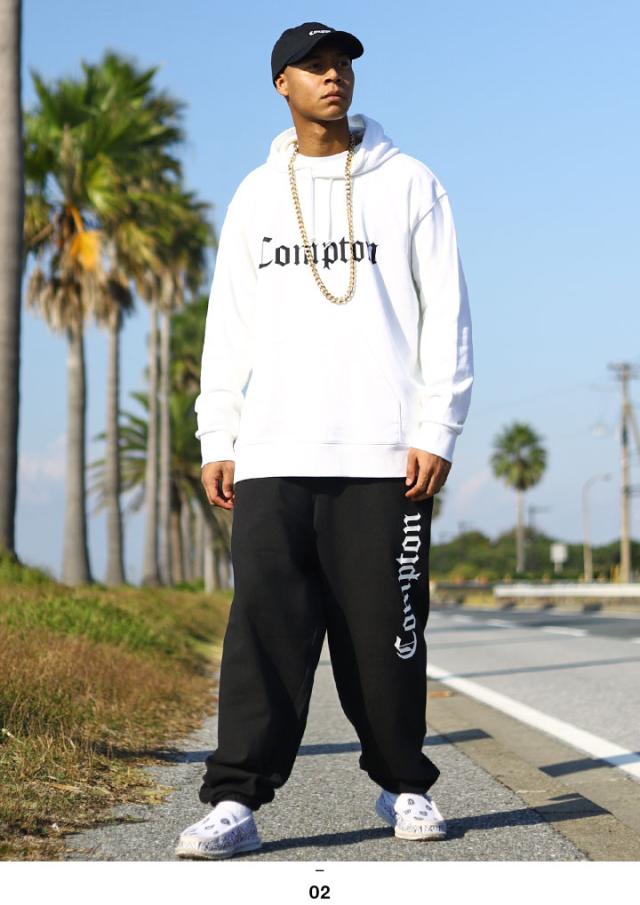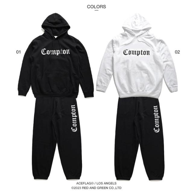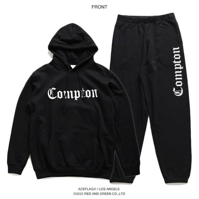 N.W.A.を輩出し、Straight Outta Comptonの舞台としても知られている「Compton」をドロップしたパーカーとスウェットロングパンツの上下セット。