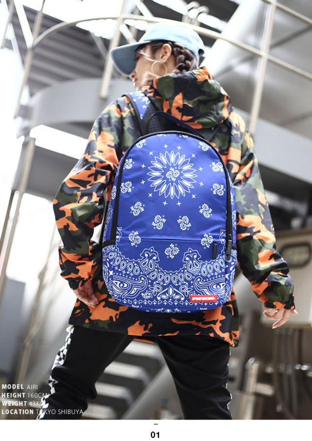 SPRAY GROUND バッグ メンズ レディース 春夏秋冬用 青 大きいサイズ スプレーグラウンド リュック バックパック 大きめ 大容量 BAG おしゃれ ペイズリー柄 バンダナ柄 b系 ヒップホップ ファッション ストリート系 ハイ ブランド B1495