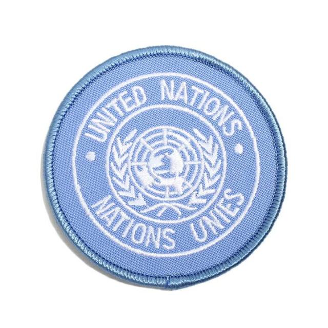 防衛省 自衛隊 グッズ 国際連合マーク ワッペン アップリケ パッチ 刺繍 国連記章 両面マジックテープ付き ハイビジュアル ハイビジ 特別イベント 航空祭 サバゲー サバイバルゲーム タクティカル PX品 PJ21-TN