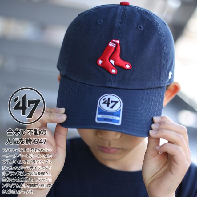 47 キャップ 帽子 47brand ローキャップ レッドソックス レディース キッズ 春夏秋冬用 紺 MLB Red Sox 靴下 ロゴ フォーティセブン cap ぼうし 浅め 男の子 女の子 子供用 子供 おしゃれ かわいい b系 ヒップホップ ファッション ストリート系 ブランド B-RGW02GWS-A1
