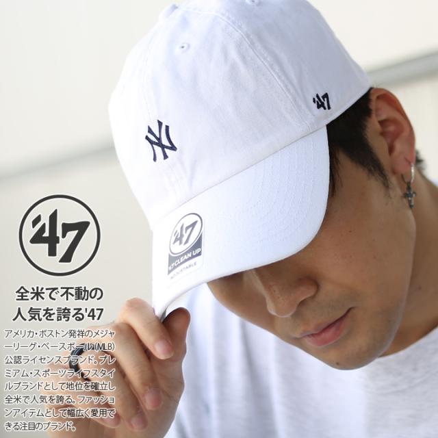 47 キャップ ニューヨークヤンキース メンズ レディース 春夏秋冬用 白 MLB ヤンキース NY ロゴ フォーティセブン 帽子 cap ローキャップ 浅め ベースボールキャップ おしゃれ b系 ヒップホップ ファッション ストリート系 ブランド B-HIRNO17GWH-WH