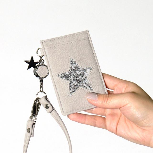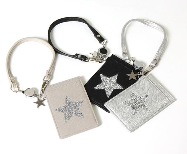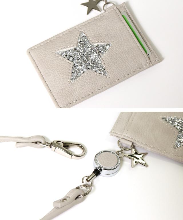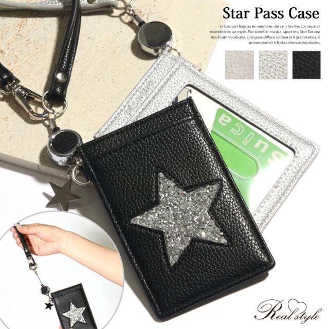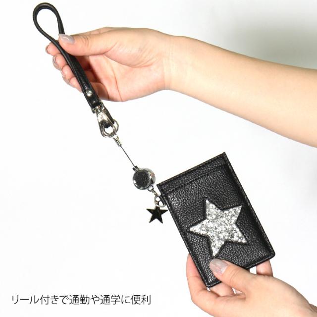 スター リール付き パスケース レディース カードケース 定期入れ カード入れ カード収納 icカード ストラップ付 suica pasmo スイカ パスモ 定期 薄型 通勤 通学 高校生 かわいい 2枚 3枚 bdc088
