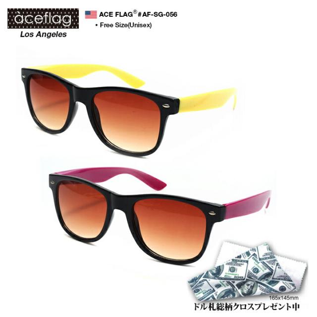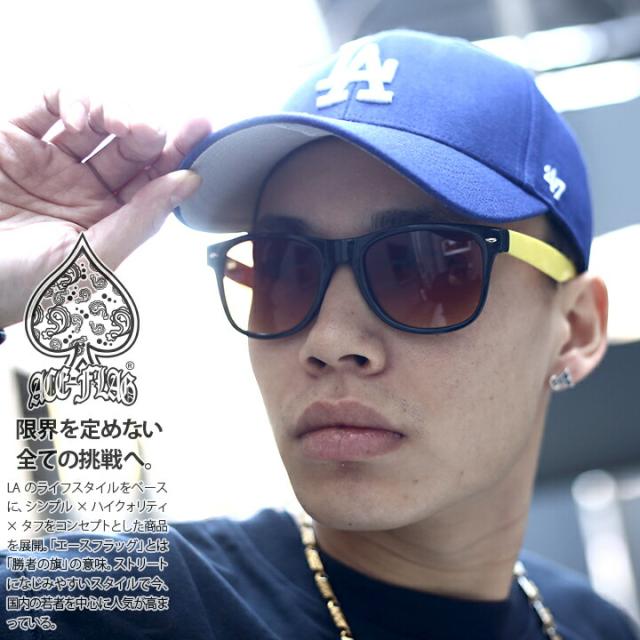 サングラス ウェリントン ACEFLAG イエロー ピンク パープル ブルー ポップ ストリートファッション ブラウングラデーショングラス 2トーン メタルパーツ付き HIP HOP B系 ギフト AF-SG-056