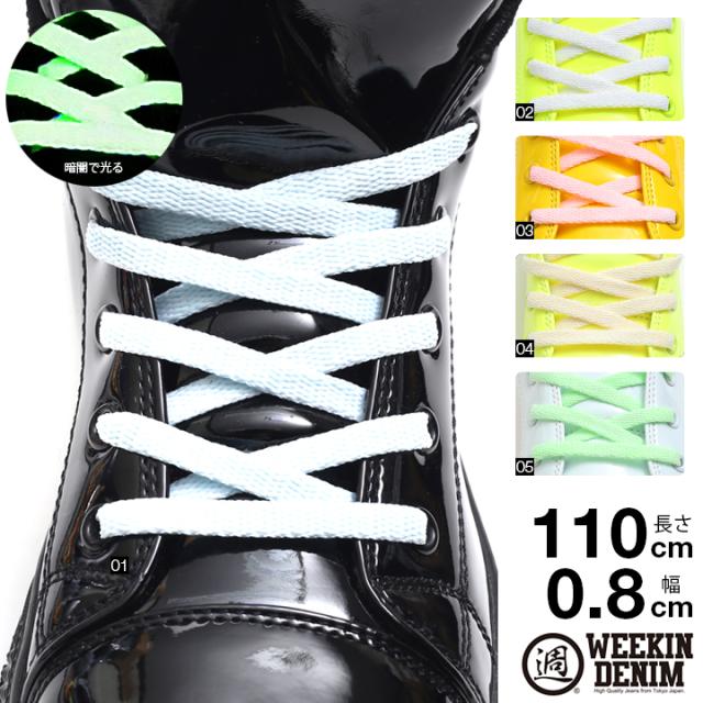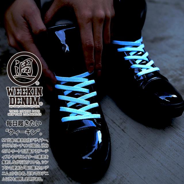 靴紐 おしゃれ ウィーキンデニム WEEKIN DENIM シューレース 平紐 つひも メンズ レディース b系 ストリート系 暗闇で光る 蓄光 夜光 ネオンカラー クラブ 発表会 ライブに 長さ110cm 蛍光 WD-FW-KH-016