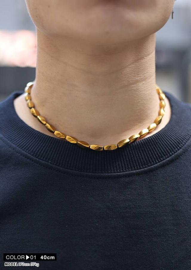 ヘマタイトでは珍しいシルバ&ゴールドタイプのネックレス。