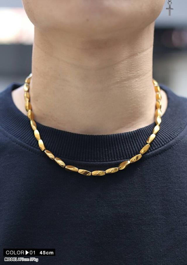 金属的なきらめきとツヤ感が男らしく首元を演出してくれます。全2色各3サイズ展開。