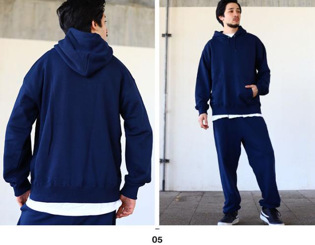 素材は胴回りに動きやすく、ゆったりしたリラックス感があり、1枚でもシルエットがビシッとキマる程よい厚みが人気の10ozの裏パイルスウェット。