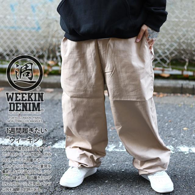バイヤー推薦!文句なしの太さ、圧巻の極太シルエット。数々のアーティストをサポートし、モデルやラッパー、ダンサーなど、ファッショニスタが着用している東京渋谷発ストリート系ジーンズブランドの「WEEKIN DENIM/ウィーキンデニム」からおしゃれなチノパンが入荷!