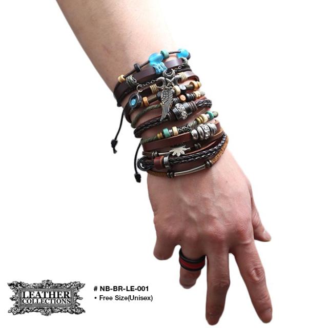 楽天ランキング入賞!70種から選べる!!レザーブレスレット ぐるぐるブレス 本革 本レザー 男女